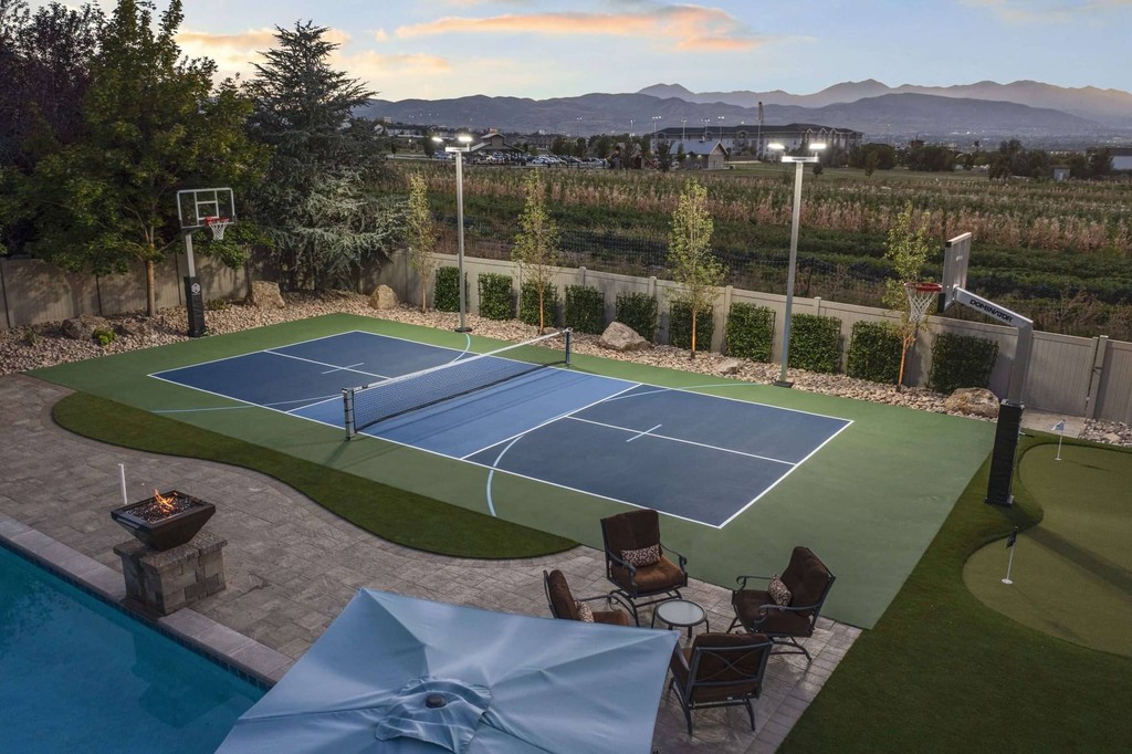 Built a lighted multi-sport court for pickleball and basketball with professional-grade surfacing, net system, and dual hoops.