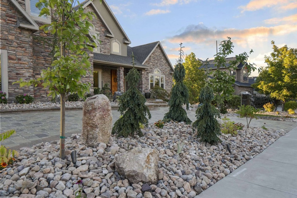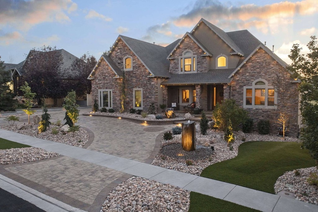 Curb Appeal Transformation: The front yard went from standard landscaping to a show-stopping paver driveway and rock landscape with water features and evening lighting that stands out in the neighborhood.