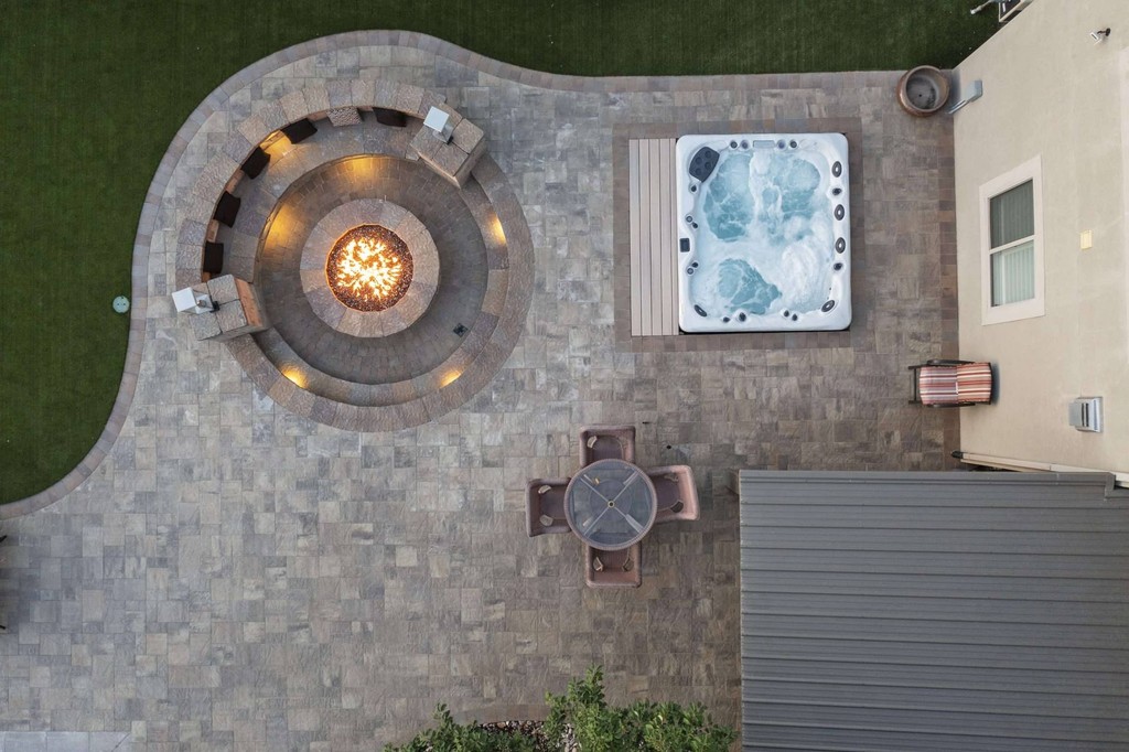 Installed a flush-mount hot tub on a dedicated paver pad adjacent to the covered pavilion.