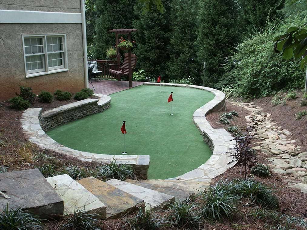 🍁 Custom Putting Green Design: Contoured greens with realistic breaks, chipping areas, and fringe — designed to your yard's shape and your game.
