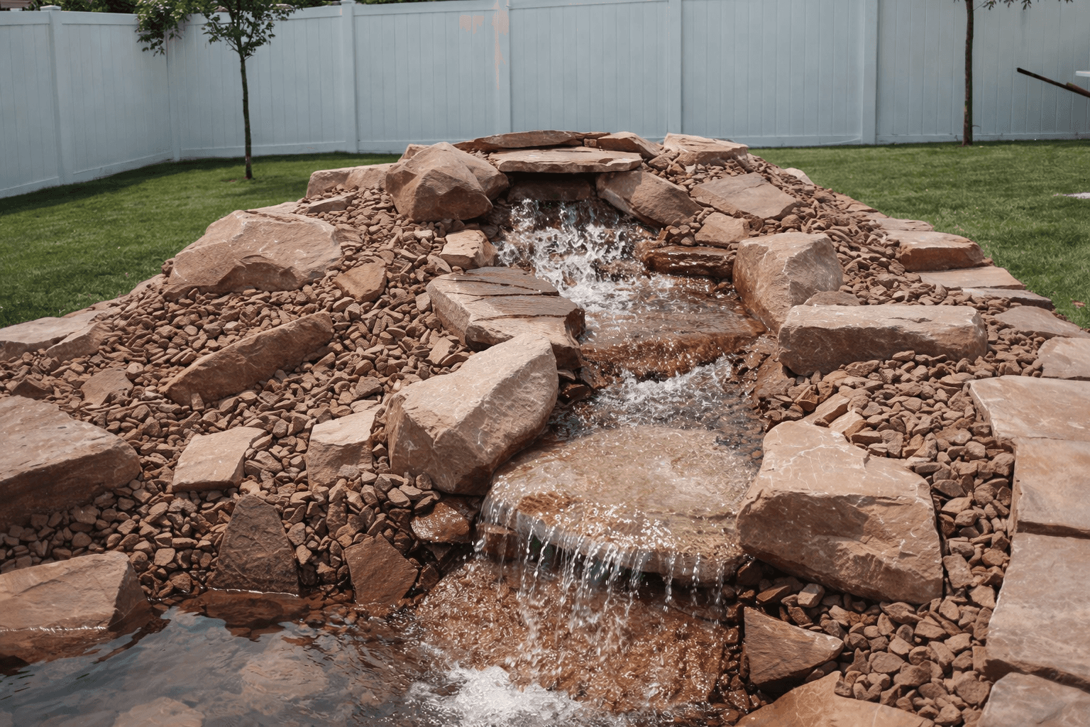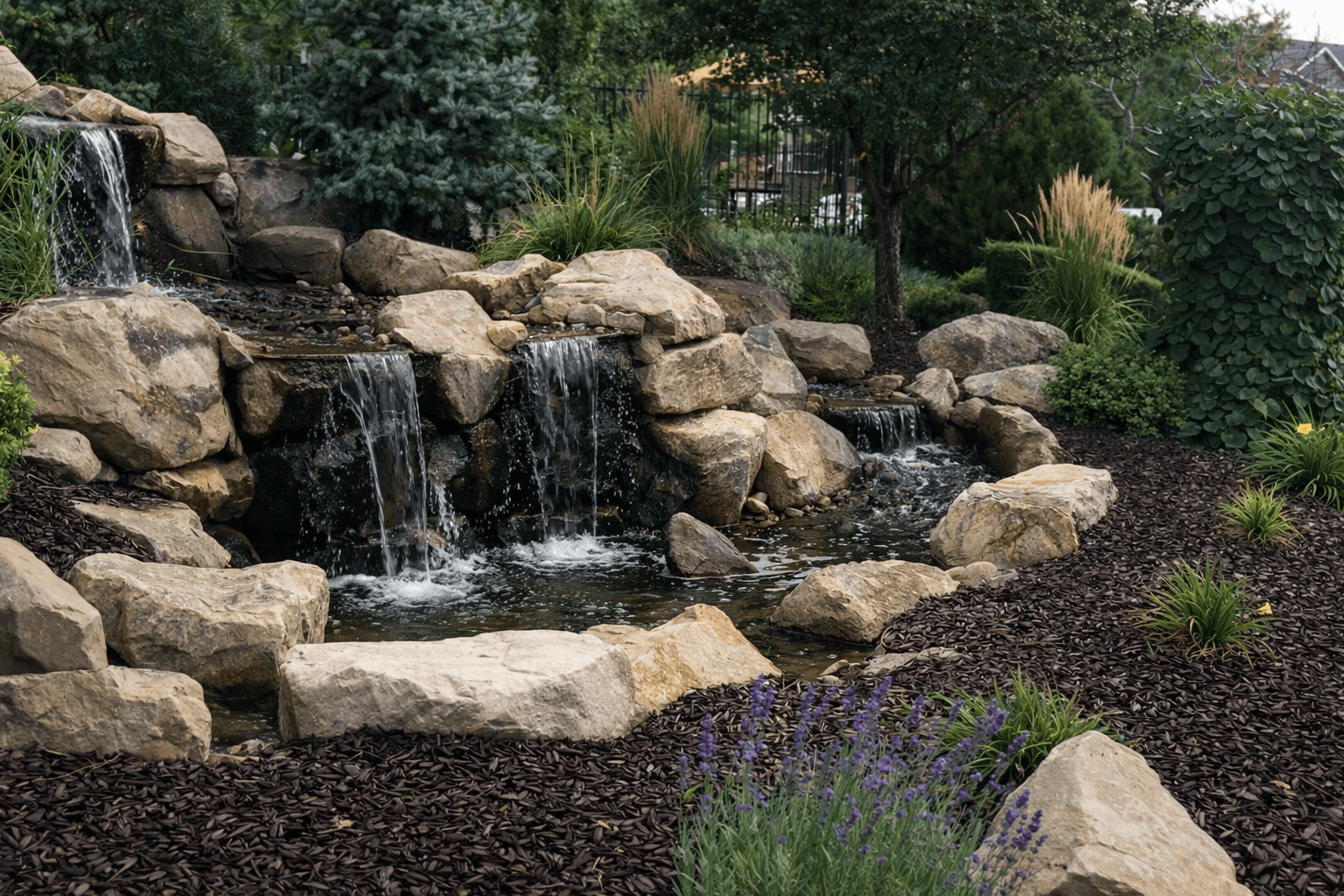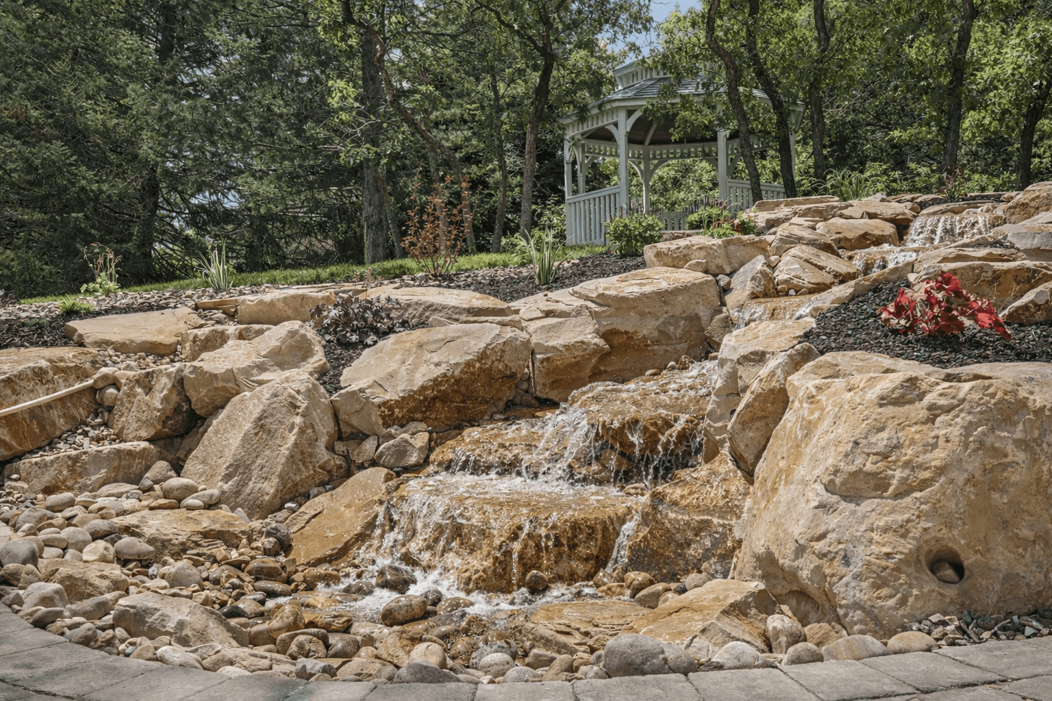 Water feature pricing varies widely based on type, size, and stone requirements. Simple bubbling rocks start lower; multi-tier waterfall systems are a more significant investment. We scope everything after a site visit.